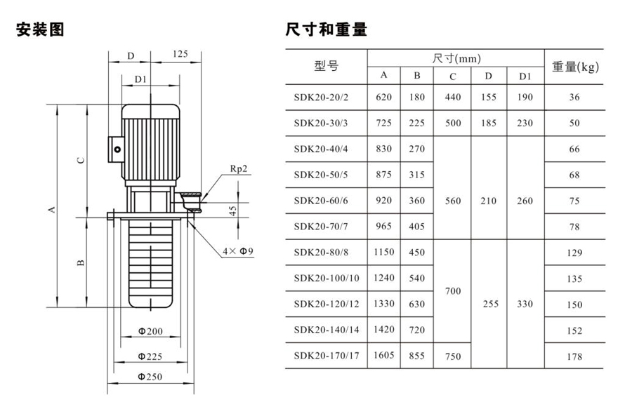 SDK20/SDKT20為配用標準電機的非自吸立式多級離心泵,電機軸和泵軸用聯(lián)軸器直接聯(lián)接的結構。為滿足水槽或容器的安裝深度,可安裝空套的腔體來改變泵本身的侵入 深度。