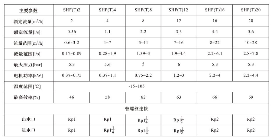 SHL/SHF/SHFT4為臥式多級(jí)非自吸多級(jí)離心泵,配加長(zhǎng)軸電機(jī)。緊湊式結(jié)構(gòu)使泵尺寸很小,軸向入口或徑向出口。