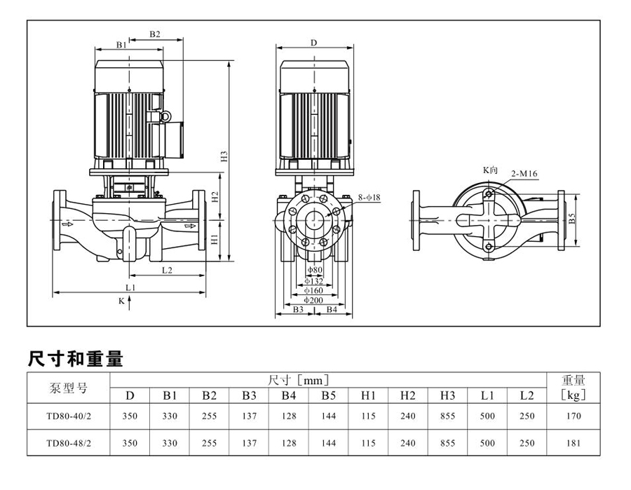 TD80系列單級管道離心泵,配有標準電 機和機械密封。此類產(chǎn)品的結(jié)構(gòu)與相近類型產(chǎn)品相比,更不易受到泵送液體中雜質(zhì)的影響。產(chǎn)品設(shè)計為頂部可拉出的拆裝形式,其可 以在不影響管路系統(tǒng)的情況下對泵進行維修。所有泵采用創(chuàng)新式便拆式機械密封,更好機械密封無需拆卸電機。